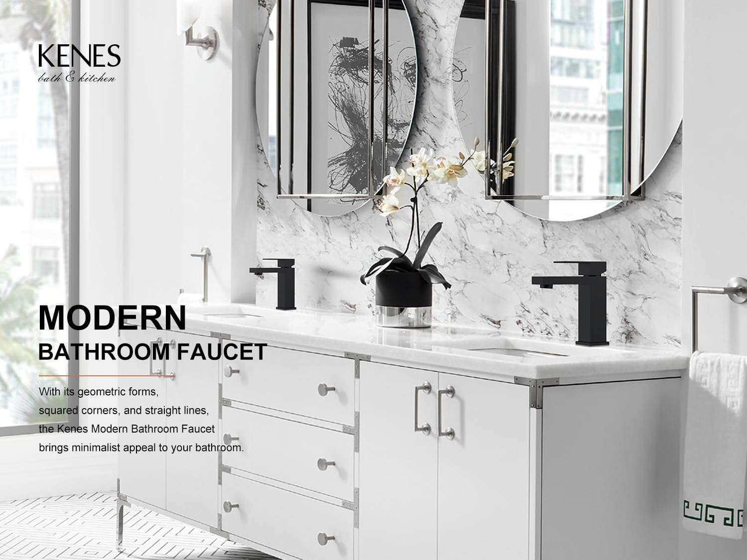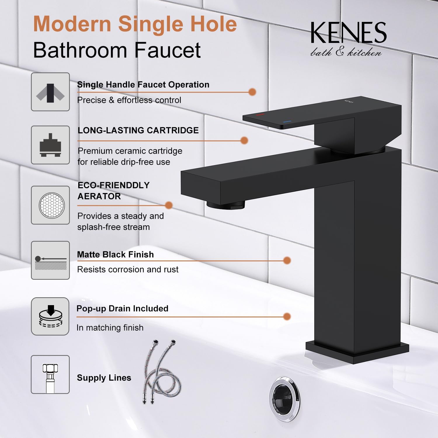 KENES Matte Black Single Handle Bathroom Sink Faucet, Modern Bathroom Faucet