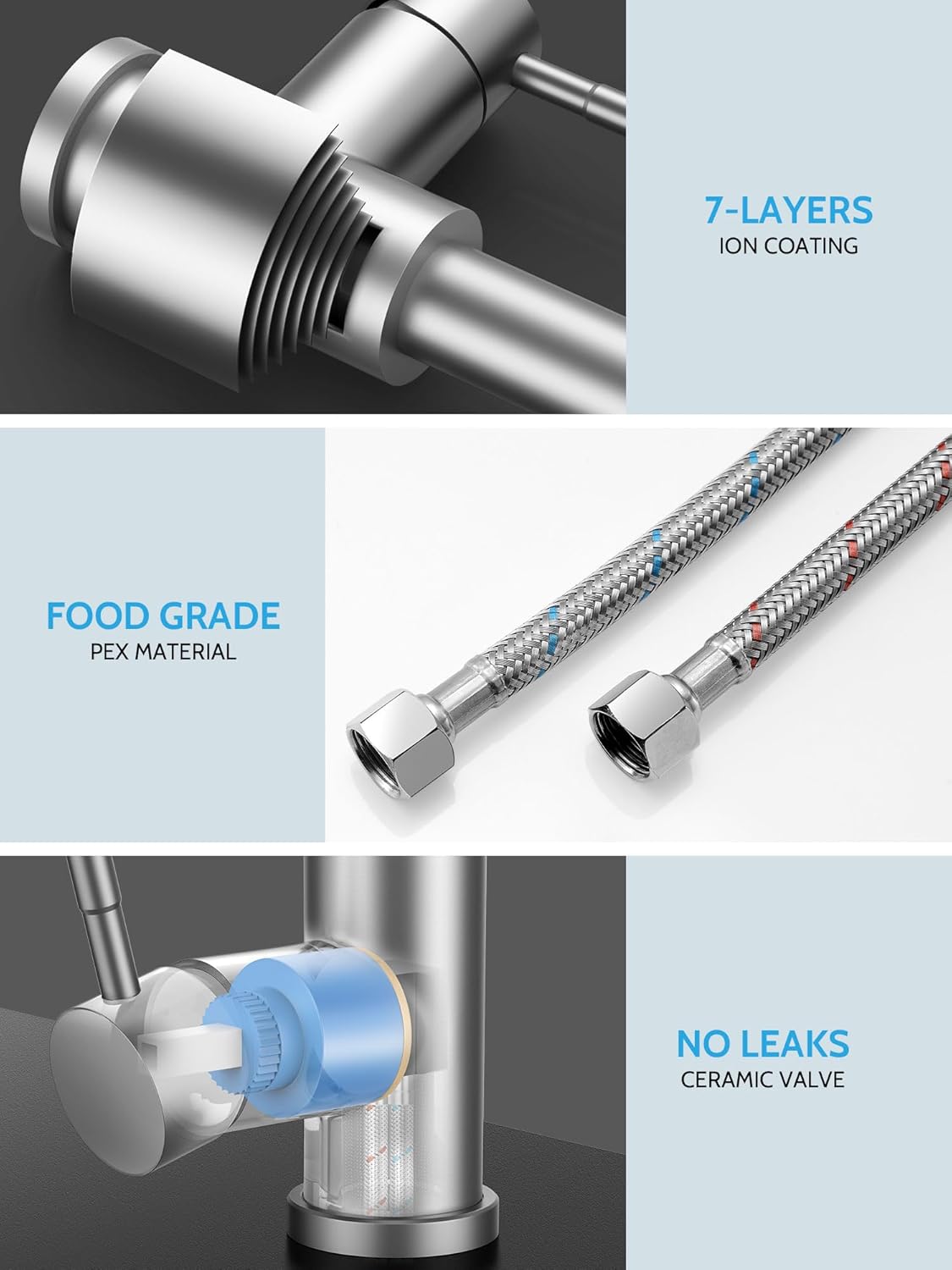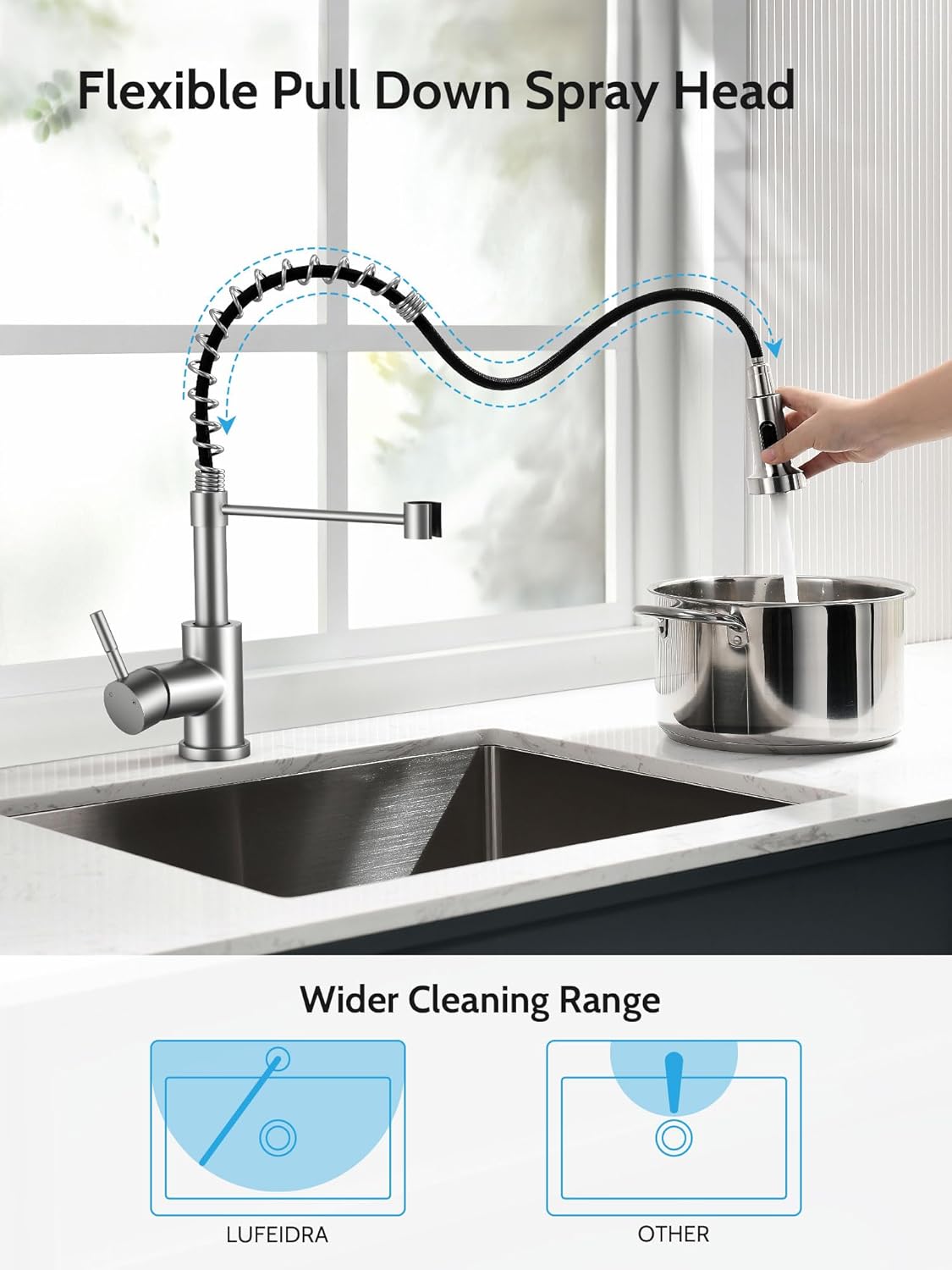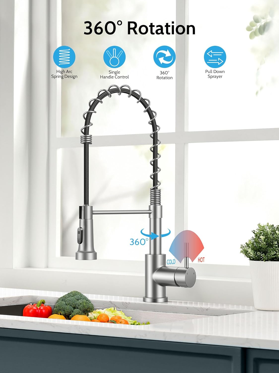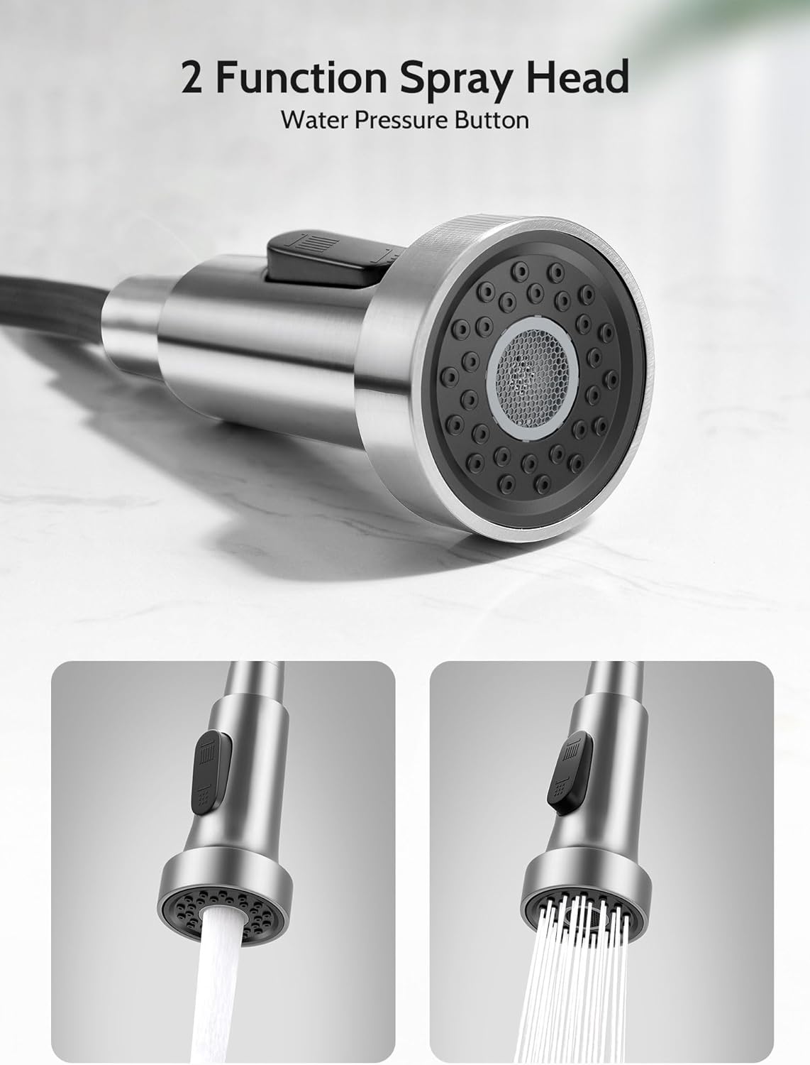 Kitchen Faucet with Pull Down Sprayer, High Arc Single Hole Single Handle Kitchen Sink Faucet with Sprayer for RV Camper, Brushed Nickel