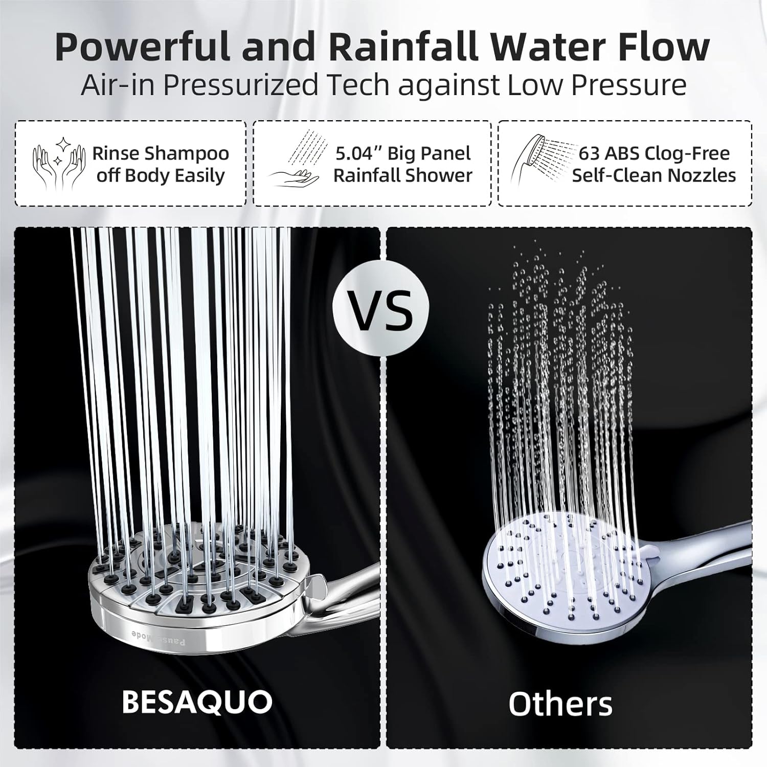 Shower Head,10 Functions High Pressure shower head with handheld, Built-in Pause Mode & 2 Power Wash, Non-Clogging Nozzles High Flow Hand Held Shower Head, Leakproof 6.5ft Hose&Metal Bracket